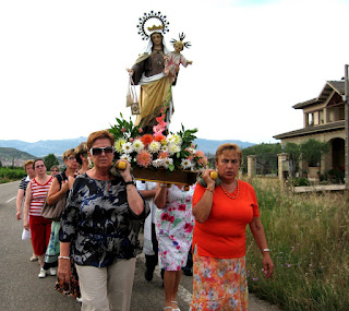 Un racimo de nueve días. Desde el 7 de julio que en una bochornosísima tarde la subimos desde su ermita a la parroquia para que presidiera nuestras celebraciones en el salón parroquial. A ella hemos encomendado todos nuestros afanes e ilusiones, a todos los enfermos y necesitados de la parroquia. Y todas esas necesidades más personales y familiares que tenemos todos. Un momento interesante haciendo racimo al mejor fruto de Jesús, discípula y madre MARÍA, la Virgen del Carmen